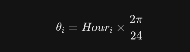 Instead, we map commit timestamps onto a unit circle using circular statistics. We extract the decimal hour ($HH + \frac{MM}{60}$) and convert it to an angle in radians: